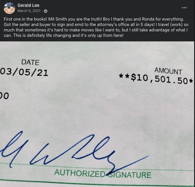 Gerald closes his 1st Deal for over $10,000 while serving in the military!