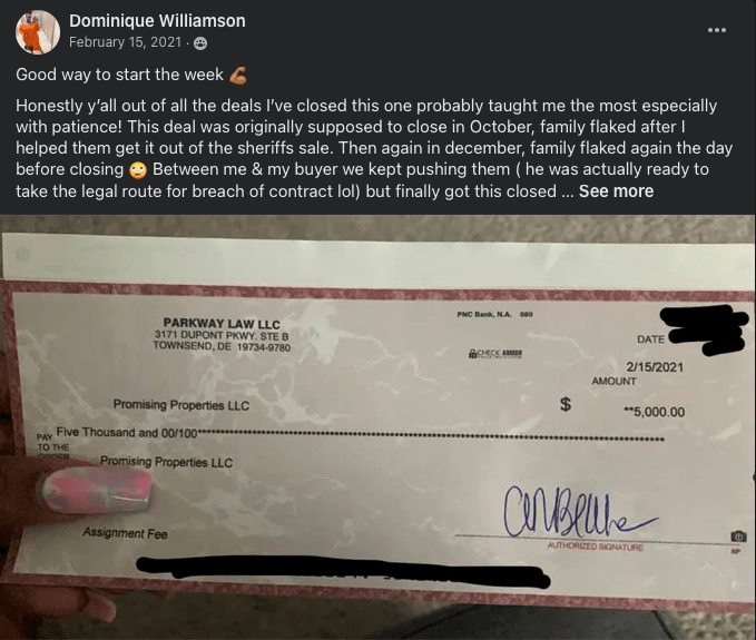 Dom Closes her First Deal for $5,000!