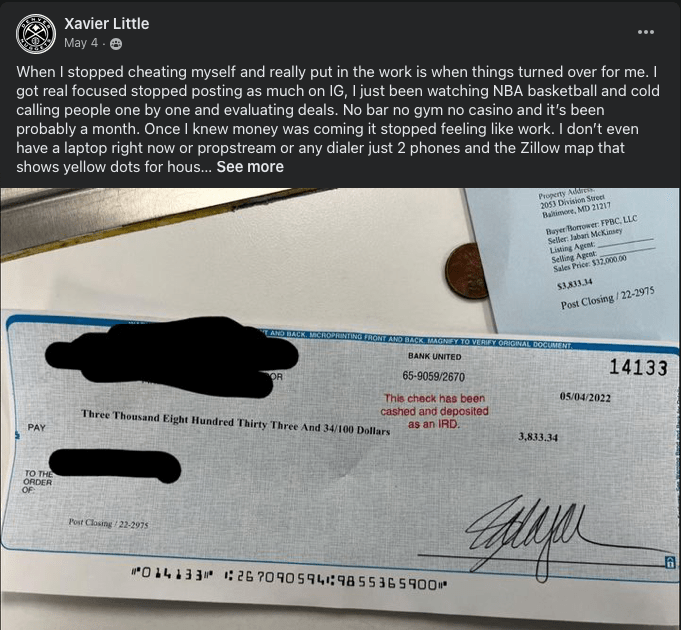Xavier in Baltimore Closes his 1st Deal for $3,800!