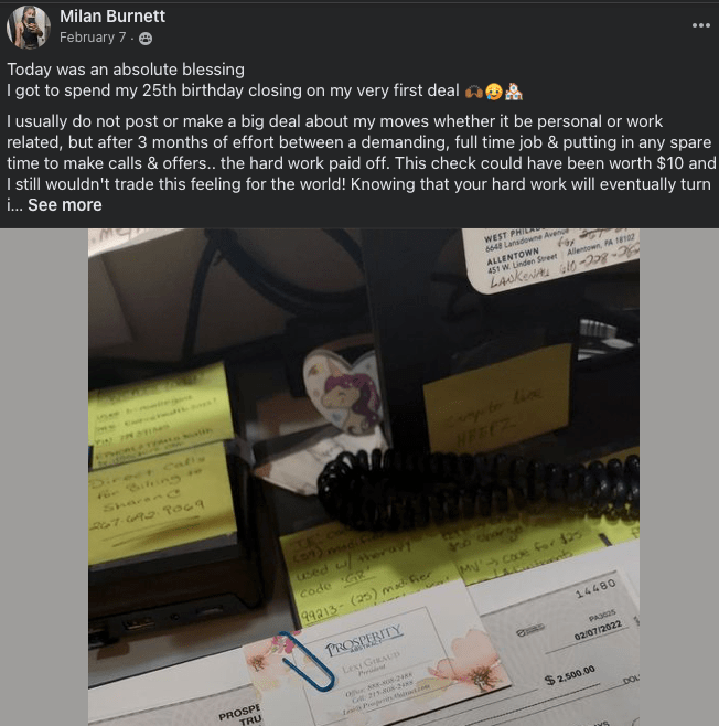 Milan in Philly Closes her First DealĀ for $2,500 while at Work!
