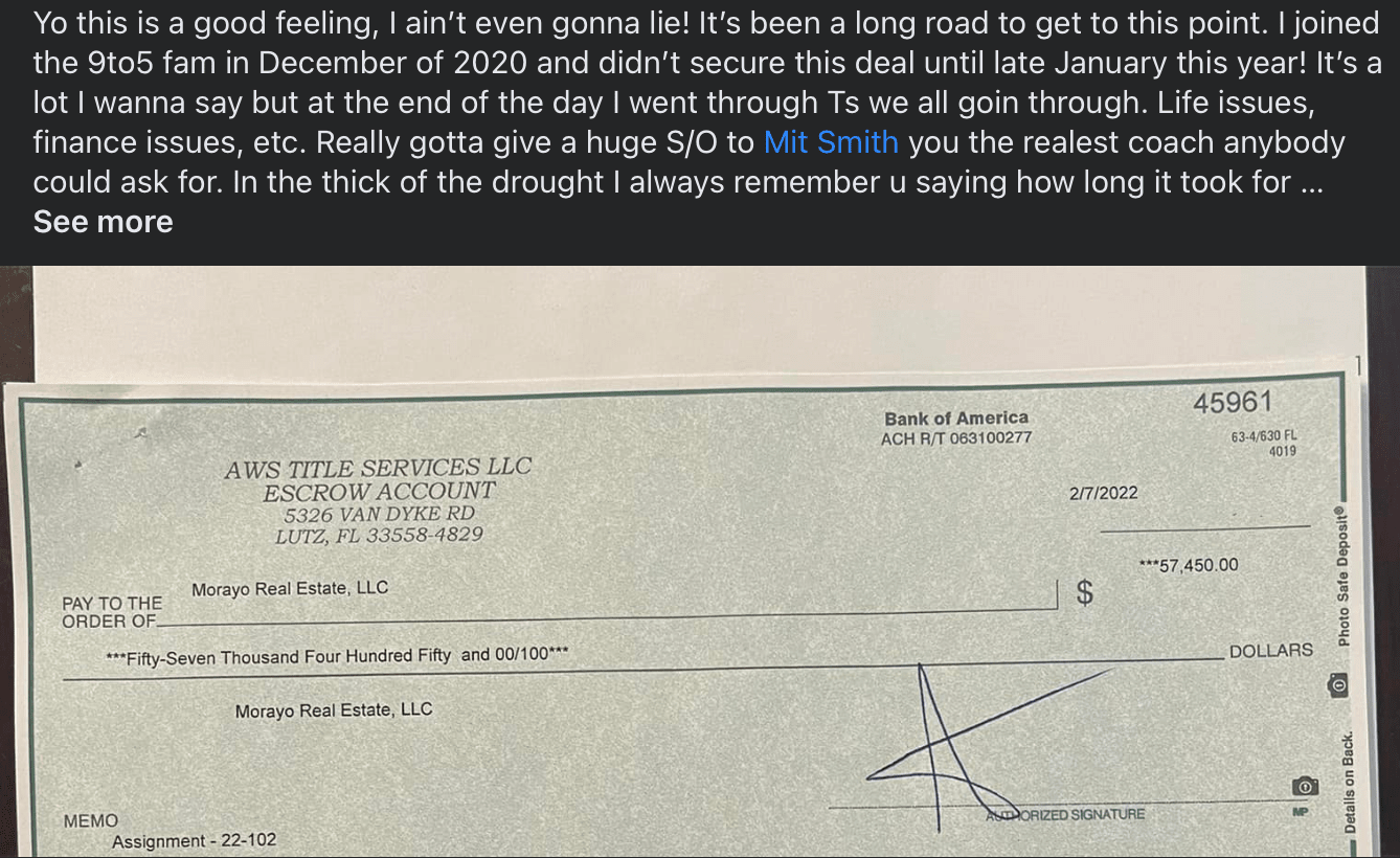 Souley Closes Many of Deal after takingĀ the 9to5 Flipping Houses Masterclass!